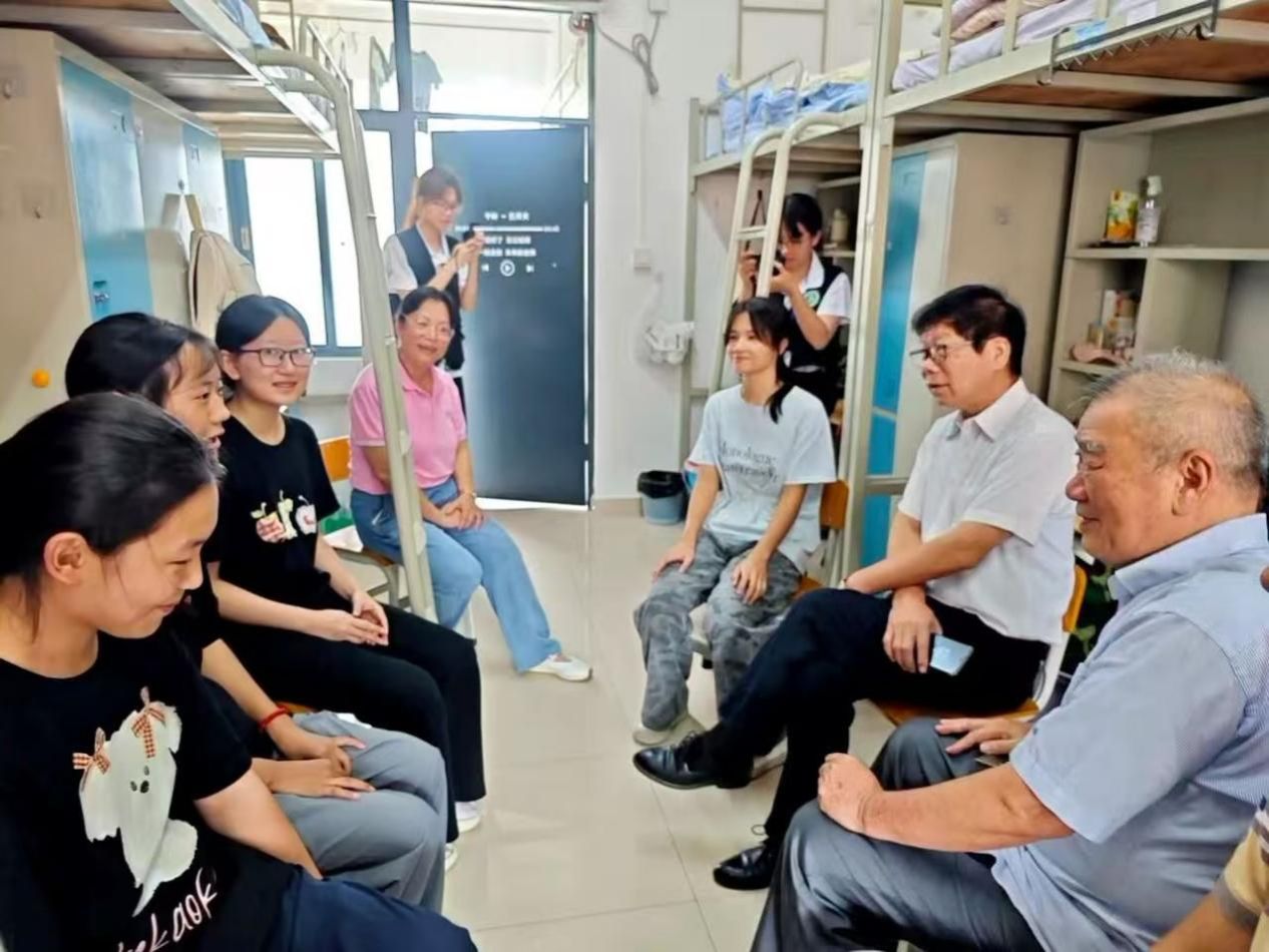 本网讯 秋高气爽,丹桂飘香。9月8日,校关工委主任叶峥嵘、副主任陈雄伟代表校“五老”工作室,在旅游与历史文化学院党委书记杨雪梅的陪同下,深入学生社区,亲切看望并慰问刚刚入学的2025级本科新生,为他们送去温暖的关怀与殷切的期望。